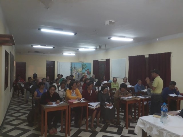 Se llevó a cabo el taller de preparación del mes de la Biblia con animadores representantes de todas las parroquia dirigió por la Hermana María de las Nieves Sanz responsable de la Animación Biblica en el Vicariato. También se dio la Formación Bíblica a los Catequistas y animadores de la parroquia con la introducción del Evangelio de san Marcos llevado a cabo Rodrigo y Magdalena.