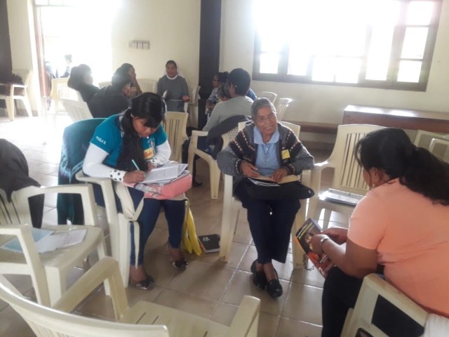 La semana del 27-30 de Agosto se desarrollo el curso de Biblia EL ROSTRO DE JESÚS EN MARCOS, con una buena participación de hermanos y hermanas buscando encontrarse con la Palabra de Dios. Asesorado por el Hermano Naudy Mogollón de la Sociedad de San Pablo y así mismo se está programado para el mes de septiembre otros cursos.