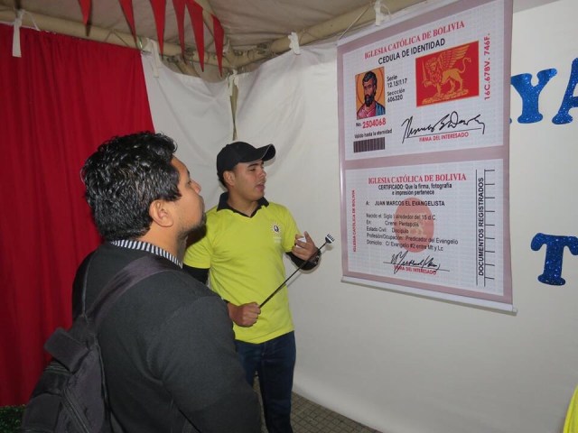 Se llevó a cabo el anterior domingo 26 de Agosto en la plaza central de la ciudad de santa Cruz de la Sierra, la Expo Biblia – Catequesis con una amplia participación de personas donde hubo una exposición del Evangelio de san Marcos con distintas expresiones creativas como la que podemos rescatar el carnet del Evangelista san Marcos, un despliegue artístico en Música, teatro, bailes, dinámicas y juegos entorno a despertar el interés por la Biblia y este año por el Evangelio de San Marcos