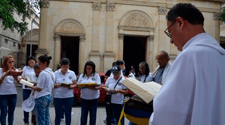 Se desarrolló la actividad pastoral a cargo del padre Jairo Cárdenas, encargado de la Pastoral Bíblica, con el fin de invitar a los fieles a hacer sus donaciones para regalar el motivo mensaje de la Palabra de Dios.