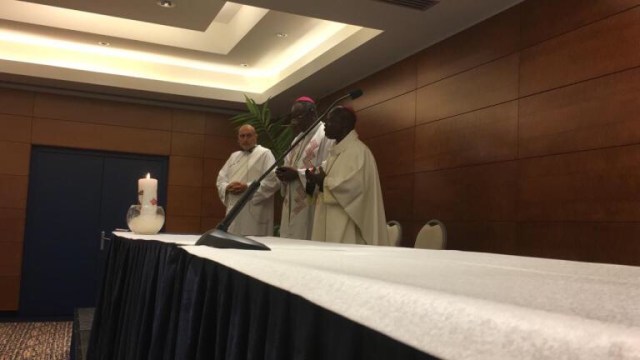 Finalmente en el cierre de esta segunda jornada, los participantes tuvieron además la oportunidad de celebrar y compartir la Eucaristía, presidida por Mons. Mathieu Madega Lebouakehan, Obispo de Mouila y Presidente de la Conferencia Episcopal de Gabon.
