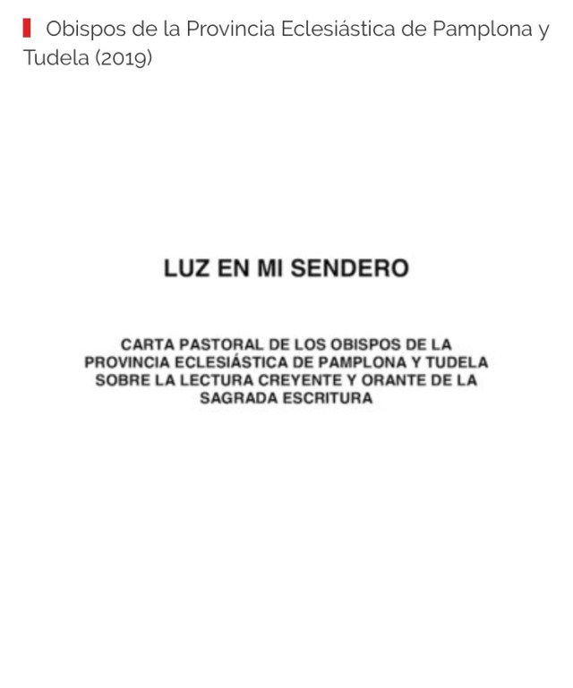 La carta pastoral de los Obispos de la Provincia Eclesiástica de Pamplona y Tudela “Luz en mi sendero” puede ser consultado a través de la sección de documentos de nuestra pagina web: https://c-b-f.org/