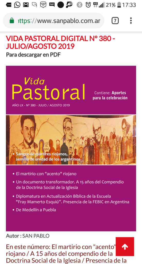 Ya salió el primer número de la Revista VIda Pastoral Julio/Agosto 2019 con la sección «Miembros de FEBIC en Argentina»