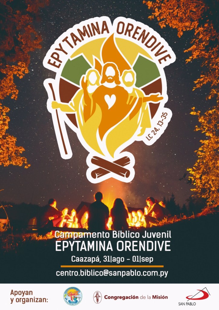 “Epytamina orendive” es una propuesta de Campamento Bíblico Juvenil de fin de semana, guiado y animado por jóvenes para jóvenes. El nombre, en guaraní, nos remite al relato bíblico de los Discípulos de Emaús (Lc 24, 13-32) y a la petición de estos discípulos: “Quédate con nosotros”.
