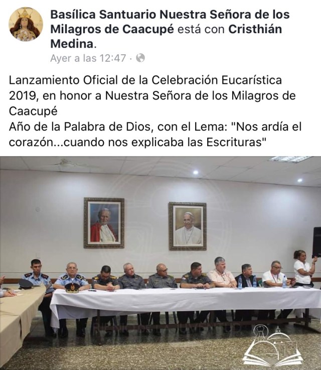 Lanzamiento Oficial de la Celebración Eucarística 2019, en honor a Nuestra Señora de los Milagros de Caacupé y Año de la Palabra de Dios, con el Lema: «Nos ardía el corazón…cuando nos explicaba las Escrituras»