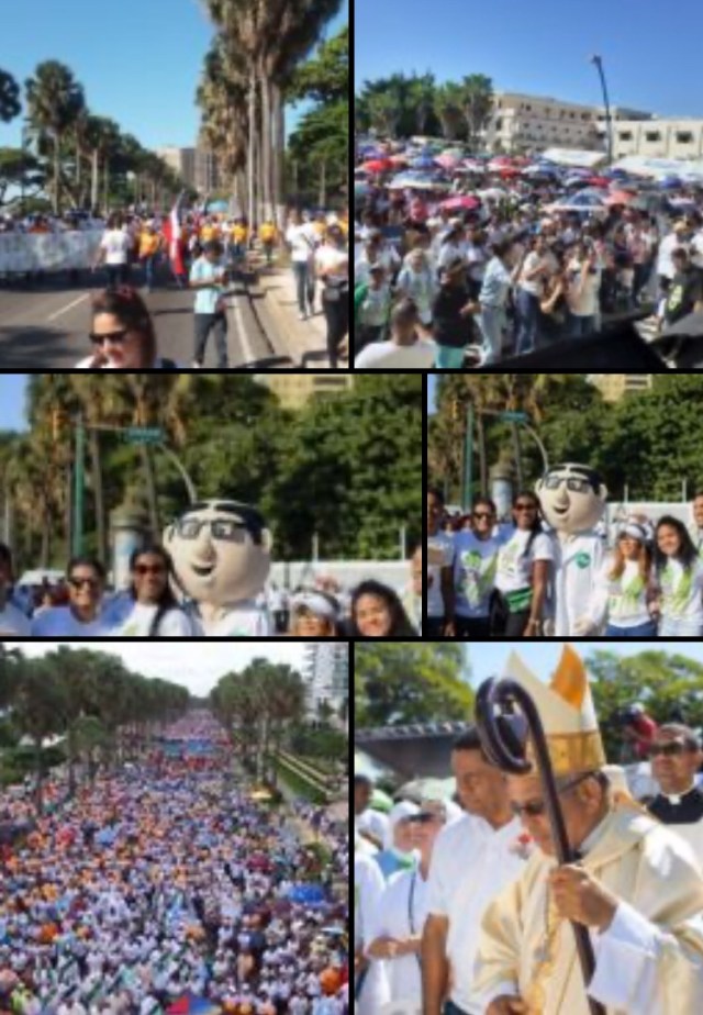 La caminata con los feligreses de todas las parroquias y cuasi-parroquias, salió de la intersección de las avenidas Mirabal e Imbert y plaza de las Hermanas Mirabal para terminar en el parque central ubicado en la avenida Bartolomé Colón.