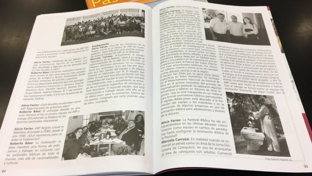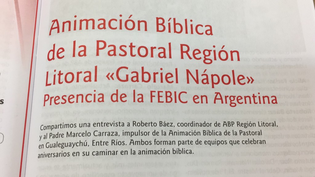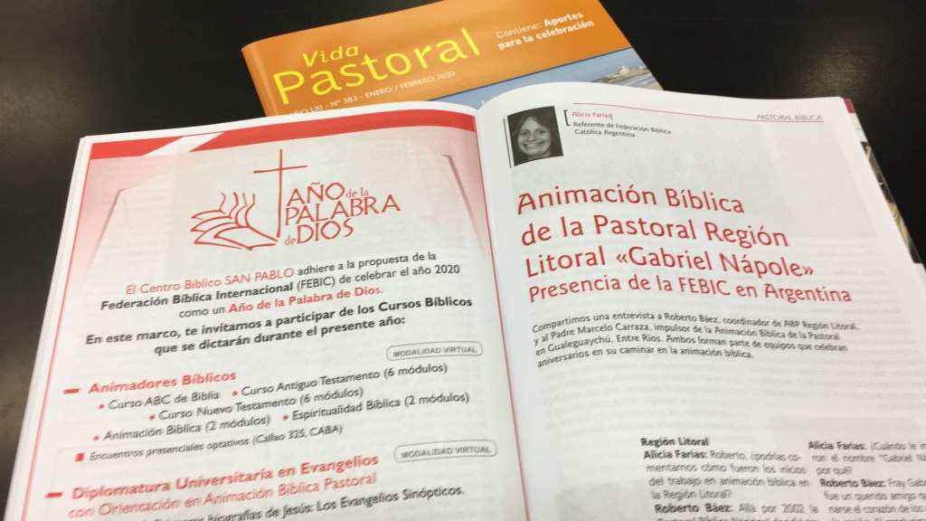 En el número de enero-febrero del 2020, aparece una entrevista a Roberto Báez, coordinador de ABP Región Litoral, y al Padre Marcelo Carraza, impulsor de la Animación Bíblica de la Pastoral en Gualeguaychú, Entre Ríos.