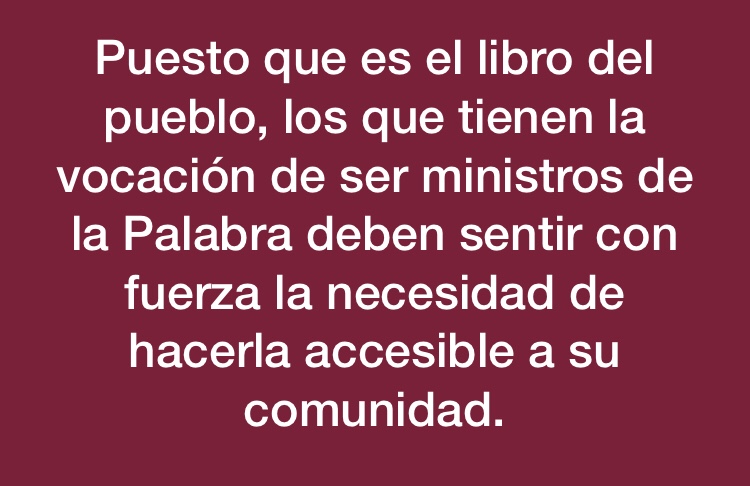 5. En esta unidad, generada con la escucha, los Pastores son los primeros que tienen la gran responsabilidad de explicar y permitir que todos entiendan la Sagrada Escritura. Puesto que es el libro del pueblo, los que tienen la vocación de ser ministros de la Palabra deben sentir con fuerza la necesidad de hacerla accesible a su comunidad.