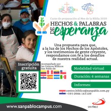 “Hechos y Palabras de esperanza” es el curso virtual gratuito, organizado por el trabajo conjunto de los Centros Bíblicos San Pablo de habla hispana del Continente y Europa, en preparación al Mes de la Biblia 2020. En medio del Año de la Palabra, proclamado así en conmemorando los 50 años de la creación de la […]