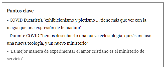 – Durante COVID “hemos descubierto una nueva eclesiología, quizás incluso una nueva teología, y un nuevo ministerio”