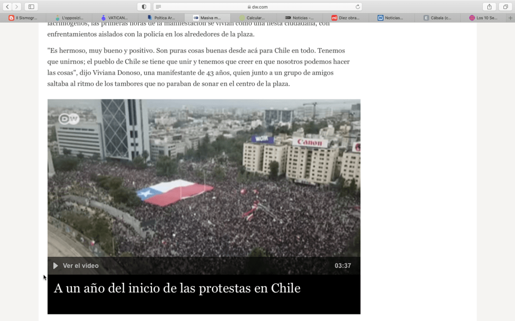Somos jóvenes que estamos de acuerdo con las demandas sociales y que hemos participado en las diversas movilizaciones que se han realizado exigiendo una sociedad más justa. El pasado 18 de Octubre se conmemoró un año del estallido social, en esta conmemoración surgieron diversas situaciones, tanto a nivel país, como también a nivel eclesial. En una parte de su declaración señaló que “los atentados afectan al alma, nos han herido y afectan el alma de los chilenos, el alma de los católicos. Nosotros queremos un Chile donde reine la paz”, como no estar de acuerdo con usted, queremos y deseamos la paz, pero también estamos convencidos que esta paz es fruto de la justicia, de aquella justicia que muchos hemos salido a la calle a exigir.