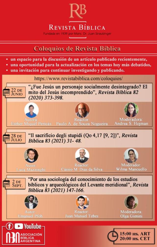 Desde Asociación de Biblistas Argantina (ABA) presentaremos este espacio académico (totalmente gratuito) para discutir artículos recientes de la Revista Biblica …