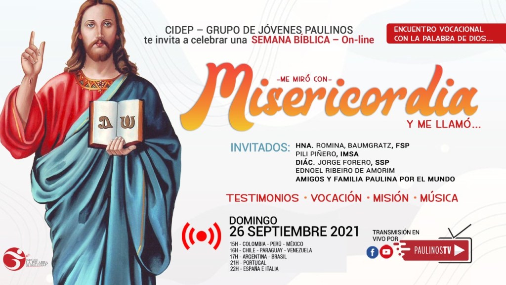 El grupo de jóvenes del CIDEP, mediante su canal de televisión digital “Paulinos TV” llevarán a cabo la primera “Semana Bíblica Virtual”, con un ciclo de encuentros en torno a la Palabra de Dios. Dicha semana comenzará el martes 21 de septiembre y culminará el domingo 26, con un encuentro bíblico vocacional.