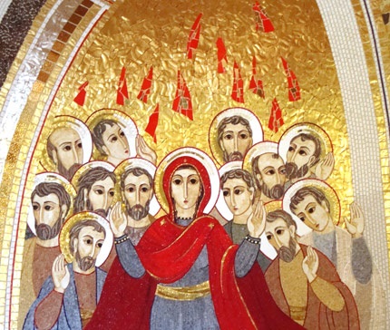 Amarillo, naranja y rojo. El padre Marko Ivan Rupnik, el artista jesuita y fundador del Centro Aletti, optó por utilizar principalmente colores cálidos para pintar al fresco las paredes de la nave y el ábside de la capilla principal del Pontificio Seminario Romano Mayor.