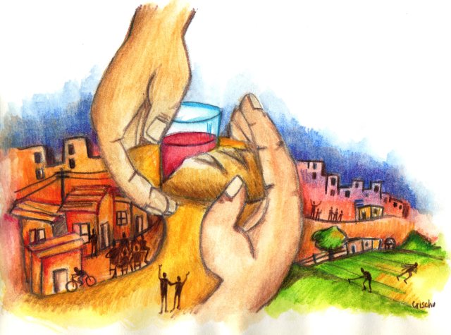 - Al celebrar el “CUERPO DE JESÚS”, se nos viene esta expresión: “Tenemos que PONERLE EL CUERPO a la vida, al estilo de Jesús”. Jesús no adora a Dios, vive en Dios. Ese vivir en Dios lo convoca a ponerle el cuerpo a la buena noticia del Reino, del Sueño de Dios: “todas somos hijas e hijos de Dios”, por eso “cada ser humano es digno”. Cada ser humano es “Barro y Aliento de Dios” (Gn.2,7).