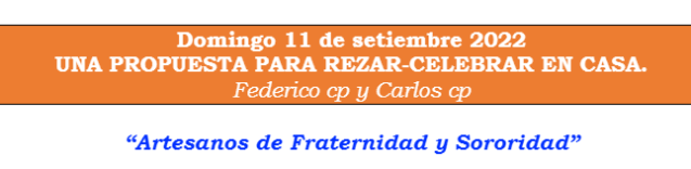 Domingo 11 de setiembre 2022. “Artesanos de Fraternidad y Sororidad”