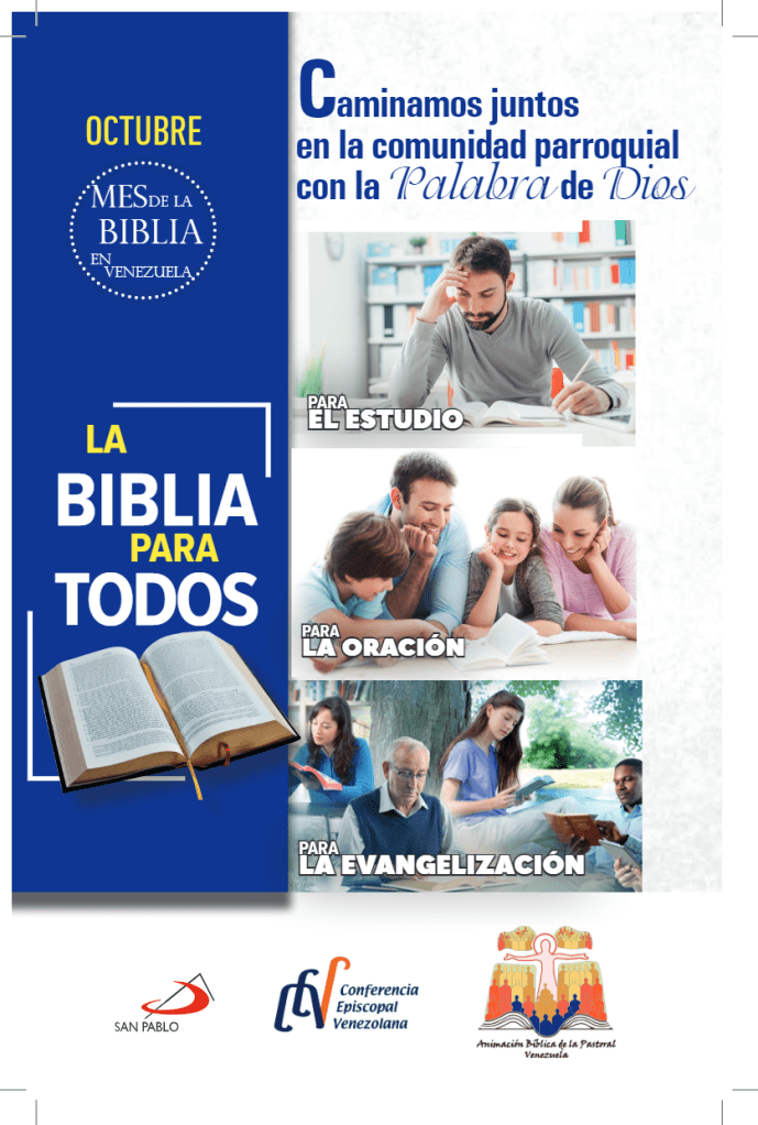 Durante el mes de octubre, la Iglesia en Venezuela celebrará el “Mes de la biblia”, impulsado por la comisión de Animación Bíblica de la Pastoral de la Conferencia Episcopal Venezolana, con el lema «Caminamos juntos en la comunidad parroquial, con la Palabra de Dios».