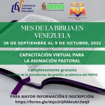 El mes de octubre en Venezuela está dedicado a profundizar en la experiencia bíblica. La comisión de Animación Bíblica de la Pastoral de la Conferencia Episcopal venezolana invita a todos los agentes de pastoral, especialmente aquellos que coordinan y animan actividades bíblicas a capacitarse para la puesta en práctica del Mes de la Biblia en […]
